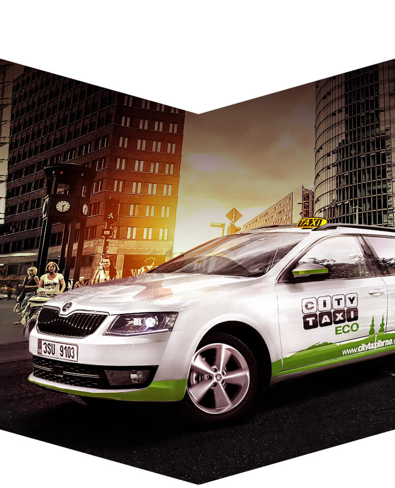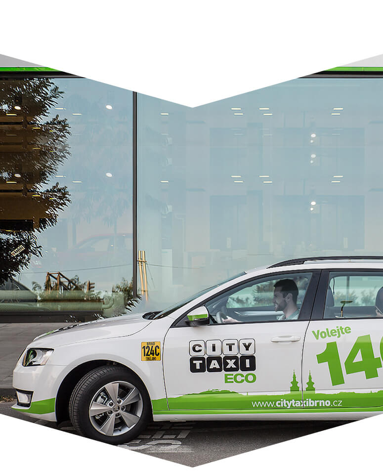 Air pollution caused by one environmentally-friendly City Taxi is up to 100% than by an average car. City Taxi Brno green cars are marked by green taxi prints symbolizing their environmentally-friendly attitude to Brno environment.